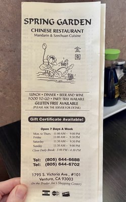 They get you in and out in 30 mins. View the menu for Spring Garden and restaurants in Ventura CA. I go almost daily I try different items most of the time and I have yet to be.